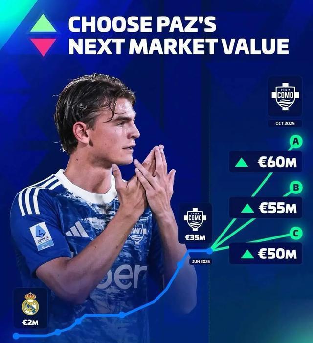 自2024夏窗加盟科莫以来,尼科-帕斯的身价已经取得了惊人的进步。上赛季,尼科-帕斯在35场比赛中参与14粒进球(6球8助攻)牛跟投,本赛季8场比赛已经拿下了4球4助攻,这位天才中场在法布雷加斯麾下已经成长为意甲赛场上的顶级球星,连续两个月夺得联盟最佳U23球员的殊荣。